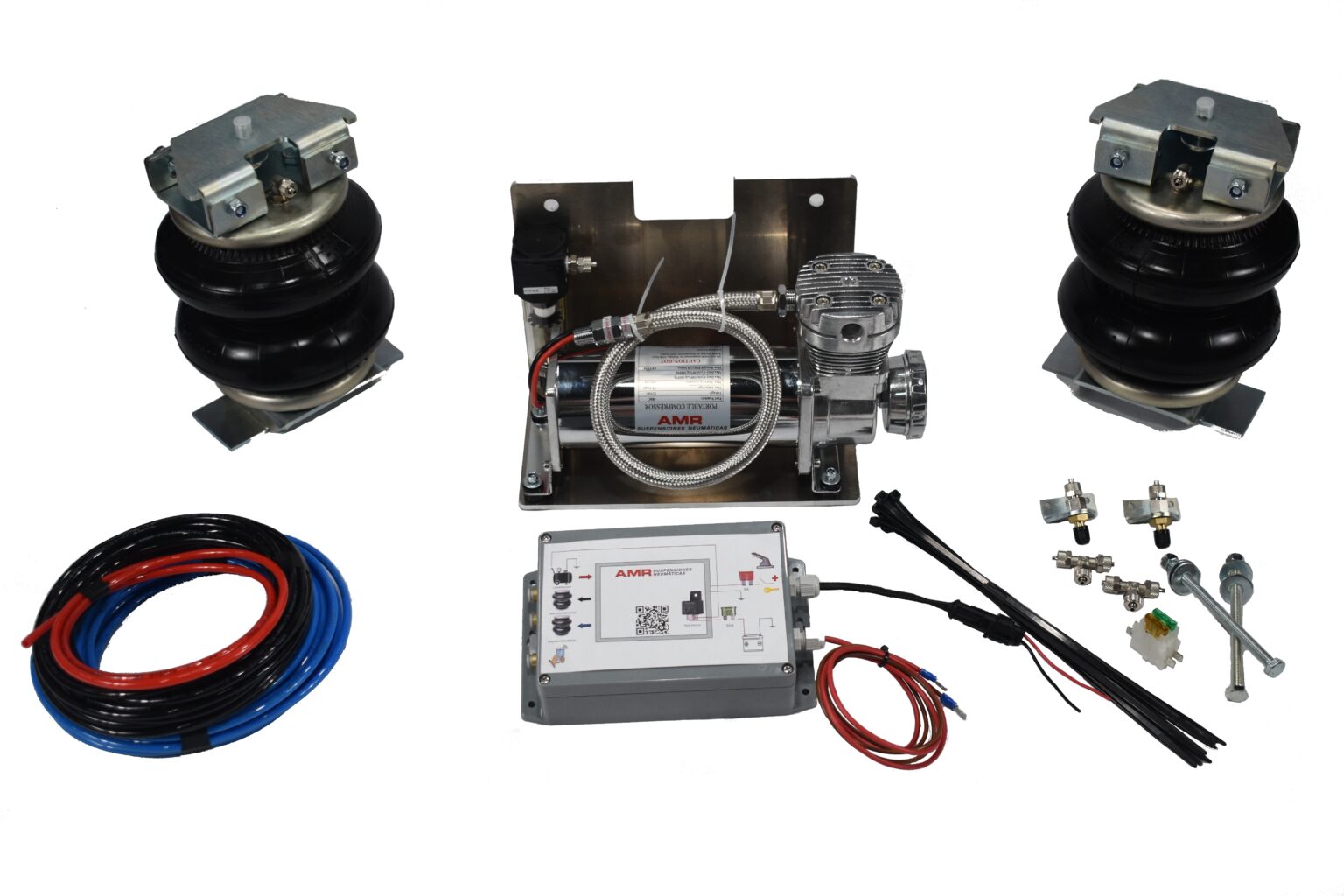 Instalamos suspensiones neumáticas auxiliares, utilizando el Kit propio AMR y kits desarrollados por nosotros.